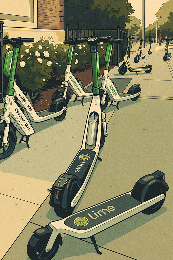 According to the city’s agreement with the companies that provide these e-scooters and bikes, once used, the vehicles are supposed to be parked upright, not blocking the path of any pedestrians. That’s not happening. Also, police officers are supposed to ticket anyone riding an e-scooter on the sidewalk. Holler if that’s ever occurred.